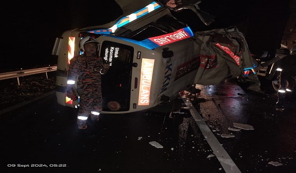 Setibanya di lokasi, komander operasi melaporkan van ambulans terbabit melanggar belakang lori treler yang berhenti di bahu jalan.