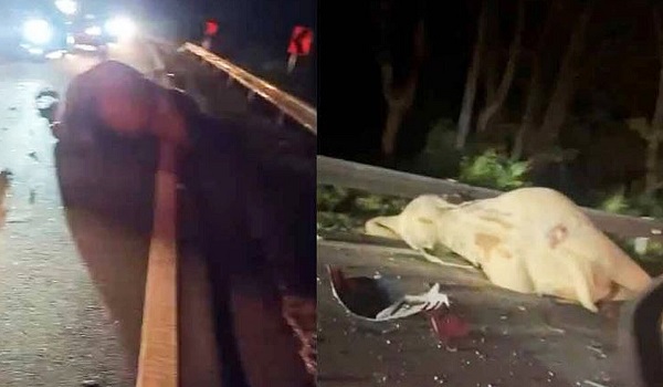 “Pada masa sama sebuah lagi kereta dipandu seorang lelaki berumur 39 tahun, isteri dan tiga orang anak mereka telah melanggar bahagian belakang SUV berkenaan sehingga menyebabkan kematian pada gajah tersebut.