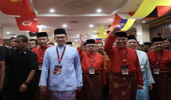 Ketibaan Datuk Seri Anwar disambut Presiden UMNO yang juga Timbalan Perdana Menteri, Datuk Seri Dr. Ahmad Zahid Hamidi serta barisan kepimpinan UMNO.