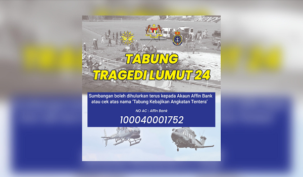 ATM dalam satu kenyataan berkata, ‘Tabung Tragedi Lumut 24′ diaktifkan bermula hari ini hingga Jun depan.