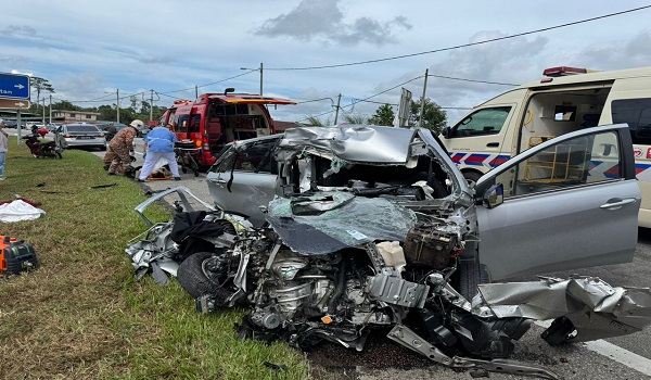 Kemalangan dipercayai berlaku apabila kereta dipandu mangsa, seorang wanita berusia 22 tahun, masuk ke laluan bertentangan ketika cuba memotong kenderaan di hadapannya, sebelum merempuh sebuah lori.