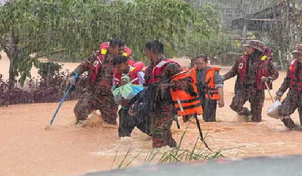 Paras air Sungai di Sungai Kahang Kampung Contoh dan Sungai Tiram Kampung Bukit Dagang mencatatkan paras bahaya.