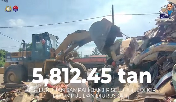 JOHOR BAHRU, 28 Mac- Sebanyak 5,813.45 tan sisa sampah direkodkan di Johor, susulan bencana banjir yang melanda negeri itu, setakat 24 Mac lalu.