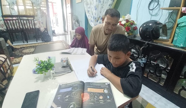 Menurut kakitangan awam Sharing Salleh 41 tahun, beliau memastikan tiga daripada empat anaknya mengikuti sesi PdPR berdasarkan tugasan yang dihantar guru kelas melalui secara dalam talian.
