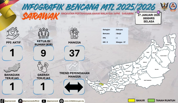 - JPBN Sarawak mengesahkan peningkatan jumlah mangsa berbanding semalam.