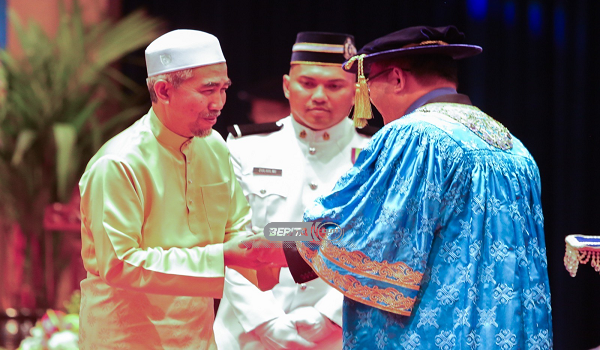 Muhamad Rashidi Sabudin yang hadir bersama-sama isteri, Mahirah Mohd Sood menerima skrol tersebut yang disampaikan Naib Canselor, Profesor Dr. Mohd Foad Sakdan pada sesi kelima majlis konvokesyen tersebut.
