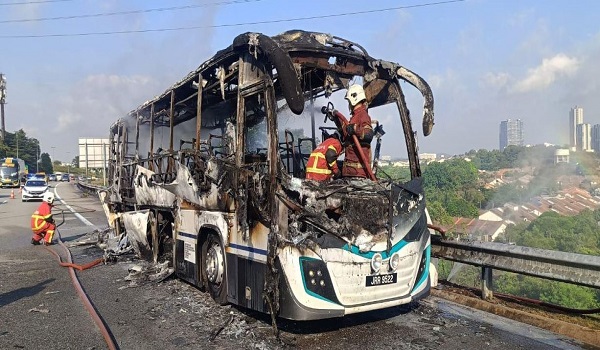 PUTRAJAYA, 16 Julai – Seramai 12 penumpang dan seorang pemandu bas persiaran terselamat selepas kenderaan yang dinaiki mereka terbakar dalam kejadian di Lebuhraya Maju Expressway (MEX), arah utara dari Putrajaya ke Seri Kembangan, pagi tadi.