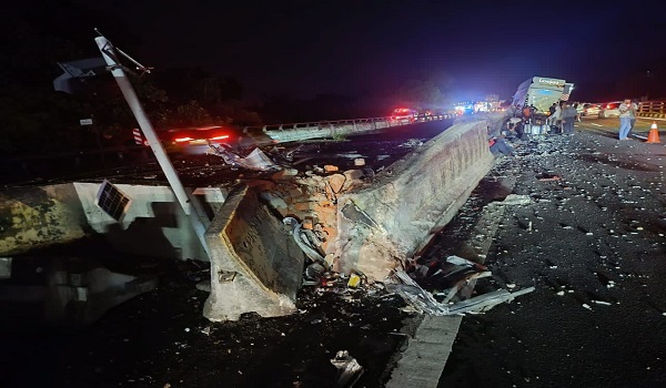 “Setibanya di lokasi kejadian, bas tersebut dipercayai hilang kawalan lalu melanggar pembahagi jalan sebelah kiri.