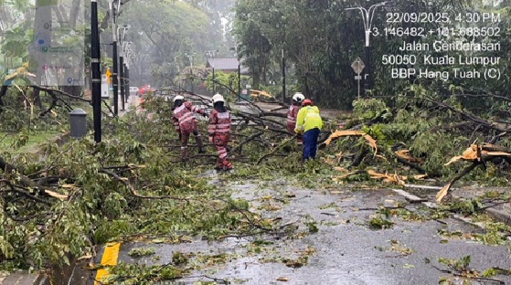 JBPM Kuala Lumpur dalam satu kenyataan memaklumkan, pasukan bomba ditugaskan ke lokasi terjejas bagi menjalankan kerja-kerja pembersihan dan pemotongan pokok bagi memastikan keselamatan awam.