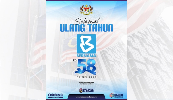 KUALA LUMPUR, 20 Mei- Perdana Menteri Datuk Seri Anwar Ibrahim mengucapkan tahniah kepada Pertubuhan Berita Nasional Malaysia (BERNAMA) atas sambutan ulang tahun ke-58.