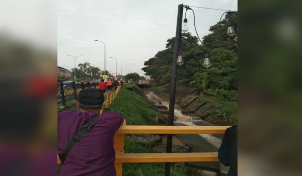 Mangsa kemudian tergelincir ke dalam longkang, sebelum dihanyutkan arus deras.