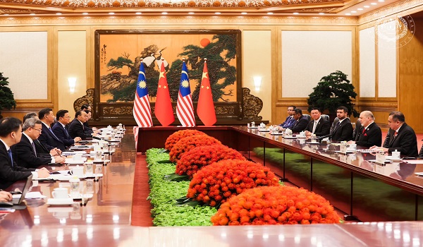 “Dasar luar Malaysia sentiasa memihak kepada perkongsian kukuh dengan China. Bergerak maju bersama-sama, itu yang kita harapkan,” titah Seri Paduka Baginda pada pertemuan dengan Presiden China Xi Jinping hari ini.