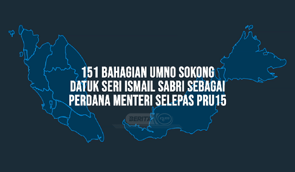 KUALA LUMPUR, 18 Oktober- Sokongan kukuh 152 Bahagian Umno mengusulkan Datuk Seri Ismail Sabri Yaakob terus menerajui kerajaan jika Barisan Nasional membentuk kerajaan selepas Pilihan Raya Umum ke-15 dengan sendirinya menyangkal dakwaan sesetengah pihak kononnya UMNO sudah berpecah dan kedudukan beliau sebagai Perdana Menteri ditolak oleh parti itu sendiri.