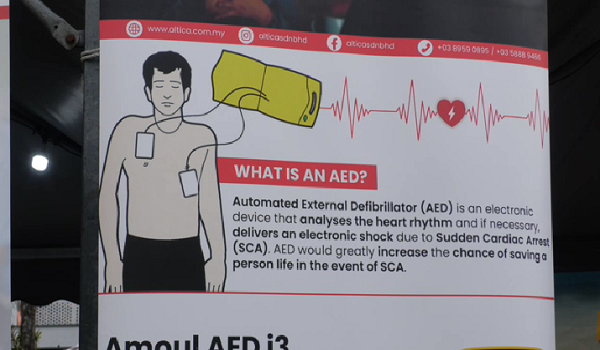 "AED merupakan peranti kecemasan yang boleh digunakan orang awam dengan panduan suara bagi membantu memulihkan irama jantung mangsa henti jantung mengejut sebelum bantuan perubatan tiba," katanya menerusi kenyataan.