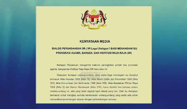 Menteri Di Jabatan Perdana Menteri (Undang-Undang dan Reformasi Institusi), Datuk Seri AzalinaOthman menerusi kenyataan memaklumkan Dialog Perundangan 3R diadakan bagi mengkaji semula kerelevanan undang-undang sedia ada.