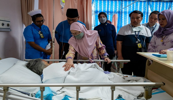 SERDANG, 1 April – Isteri Perdana Menteri Datuk Seri Dr Wan Azizah Wan Ismail hari ini meluangkan masa melawat mangsa kejadian kebakaran saluran paip gas di Jalan Putra Harmoni, Putra Height, Subang Jaya, Selangor yang menerima rawatan di Hospital Sultan Idris Shah di sini.
