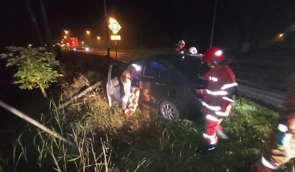 Kemalangan melibatkan sebuah kenderaan jenis sedan dengan seorang wanita berusia 28 tahun terperangkap di dalamnya dan kedua-dua mangsa mengalami cedera ringan.