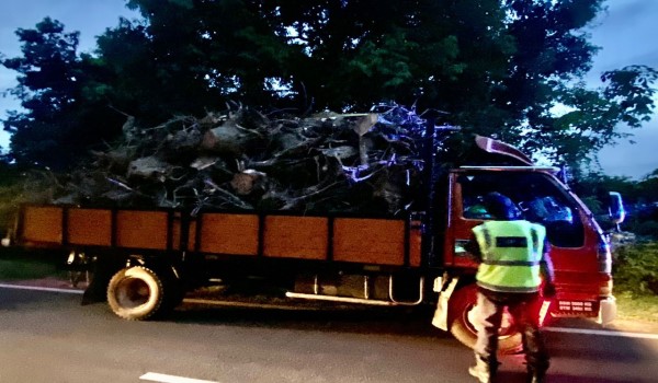 JITRA, 9 Mei- Dua buah lori yang membawa muatan tunggul kayu getah disaman kerana membawa lebih muatan.