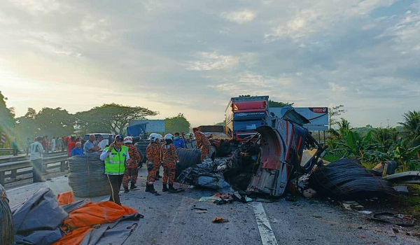 Menurut Penolong Pengarah Bahagian Operasi JBPM Perak, Sabarodzi Nor Ahmad kedua-dua mangsa maut merupakan pemandu lori membawa muatan gula pasir dan barangan logam.