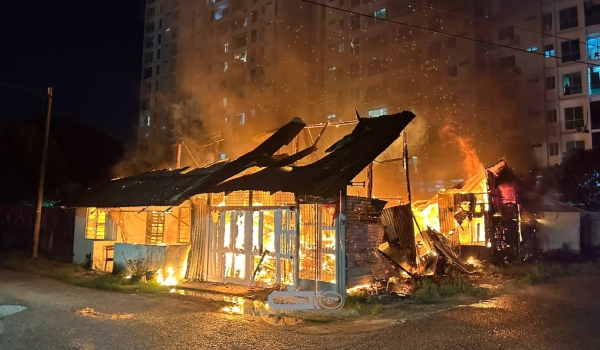 GEORGE TOWN, 22 November - Dua unit rumah setinggan di Kampung Benggali, Butterworth terbakar 90 peratus dalam kejadian pukul 9.30 semalam.