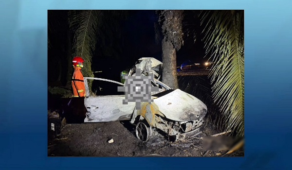 KOTA TINGGI, 22 Oktober- Seorang lelaki dan seorang pelajar sekolah maut selepas kereta dinaiki mereka terbabas dan terbakar di Kilometer 32 Jalan Tanjung Balau–Sedili, Kota Tinggi, pada kira-kira pukul 4.30 pagi tadi.