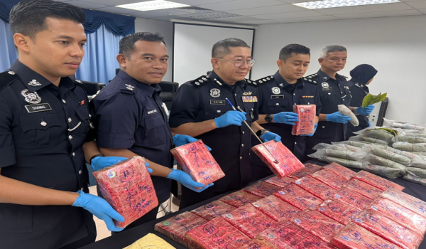 Dalam kes berasingan, dua lelaki ditahan bersama 45 beg plastik berisi daun ketum bernilai RM4,500.00.