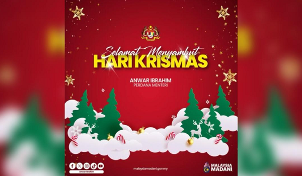 Perdana Menteri dalam hantaran sama turut mengucapkan selamat menyambut Hari Krismas kepada seluruh penganut Kristian.