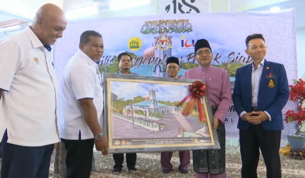 Simbolik penyerahan kunci disampaikan kepada Timbalan Ketua Bahagian Wakaf MAIK, Syeikh Ammar Mohd Suhaimi.