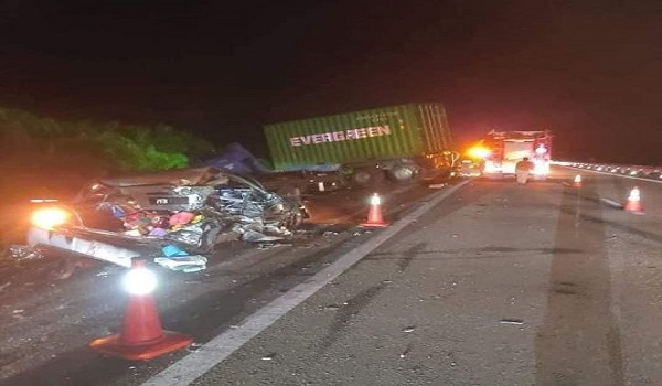 “Bomba menerima panggilan kecemasan pada 3.26 pagi. Kejadian dipercayai berlaku apabila lori kontena terbabas sebelum merempuh trak tunda yang sedang mengangkat Proton Exora rosak di tepi lebuh raya.