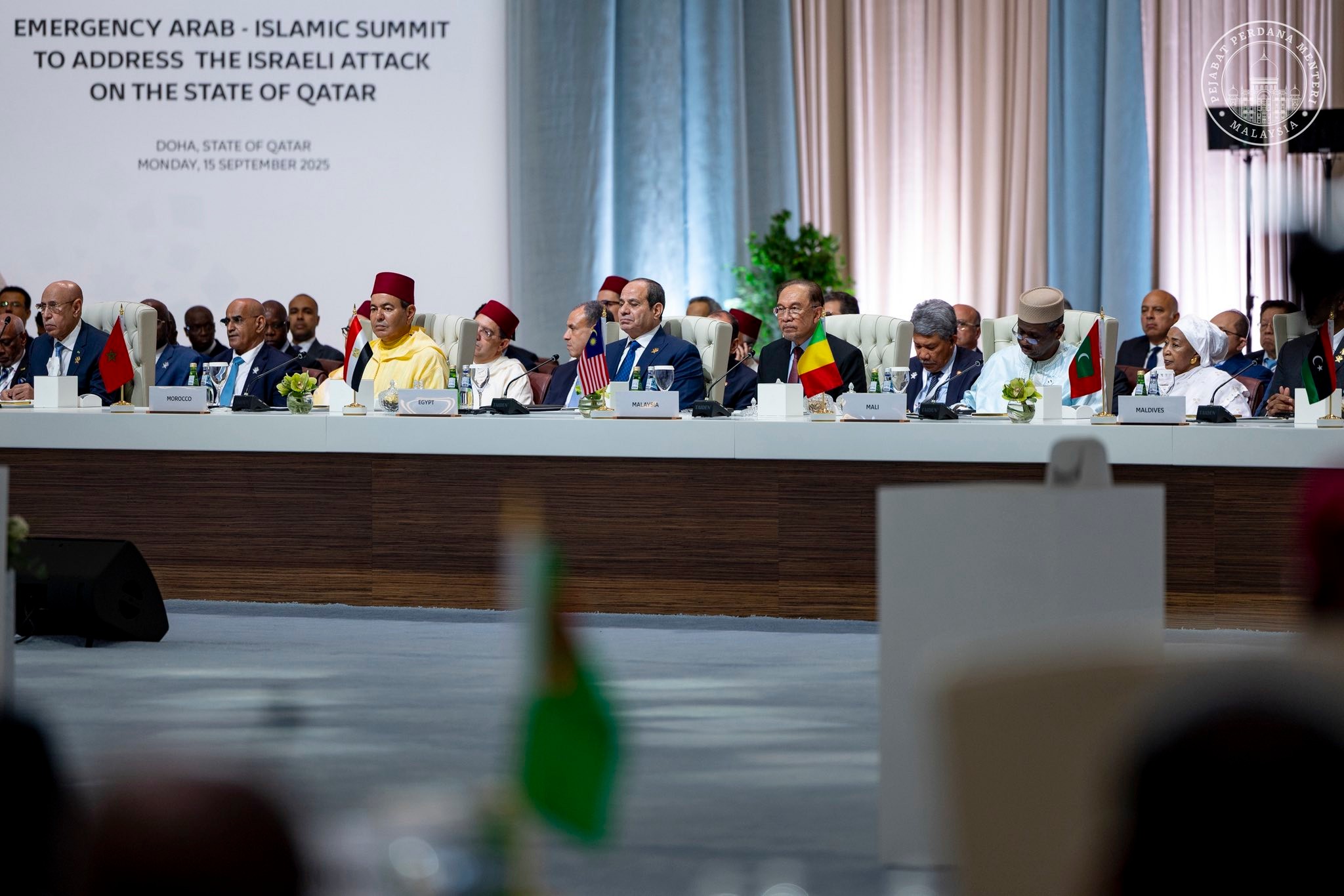 Datuk Seri Anwar menghadiri Sidang Kemuncak Tergempar itu atas jemputan Emir Qatar Sheikh Tamim bin Hamad Al-Thani, susulan perkembangan terkini melibatkan serangan Israel ke atas negara berkenaan.