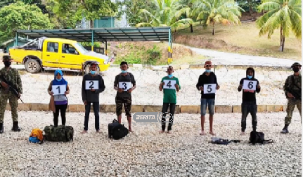 KOTA TINGGI, 5 Februari – Hasrat enam pendatang asing tanpa izin (PATI) yang sedang menunggu bot untuk keluar dari negara ini tidak kesampaian apabila mereka diberkas Briged Ketujuh Infantri Malaysia (7 Briged) di Ladang Bukit Batu Mas, Pengerang Kota Tinggi, Johor.