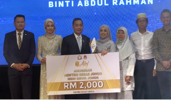 Sementara itu, pelajar dari Universiti Teknologi Mara (UiTM) Segamat, Nur Raudhatul Jannah Abdul Rahman yang aktif dalam pelbagai bidang membawa pulang anugerah Ikon Siswa Johor (kepimpinan) bagi kategori individu.