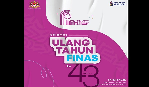 KUALA LUMPUR, 1 Jun- Menteri Komunikasi Fahmi Fadzil hari ini mengucapkan selamat ulang tahun ke-43 kepada Perbadanan Kemajuan Filem Nasional Malaysia (FINAS) dan seluruh warganya.