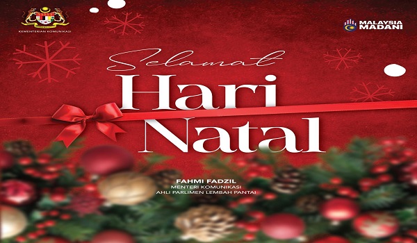 KUALA LUMPUR, 25 Disember– Menteri Komunikasi Fahmi Fadzil mengucapkan selamat menyambut Hari Natal kepada seluruh penganut agama Kristian di Malaysia.