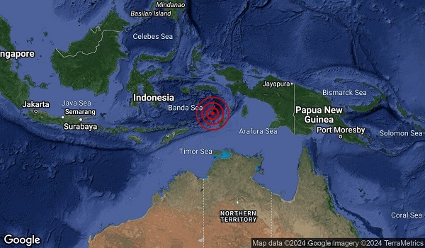 KUALA LUMPUR, 24 Julai- Gempa bumi sederhana berukuran 5.3 magnitud melanda Laut Banda, Indonesia pada pukul 8.43 malam ini.