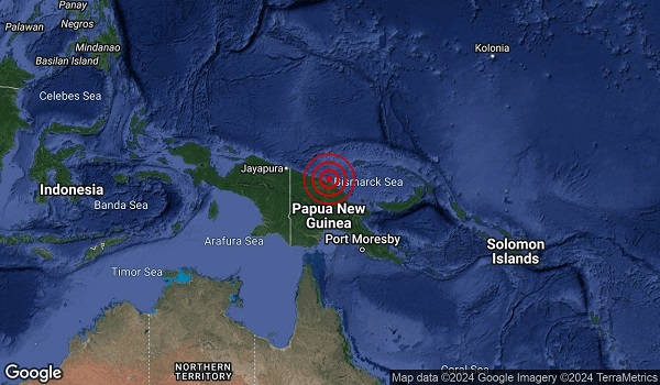 Jabatan Meterologi (MetMalaysia) memaklumkan gempa tersebut berlaku pada jarak 80 kilometer (km) timur dari dari Wiwak, Papua New Guinea.