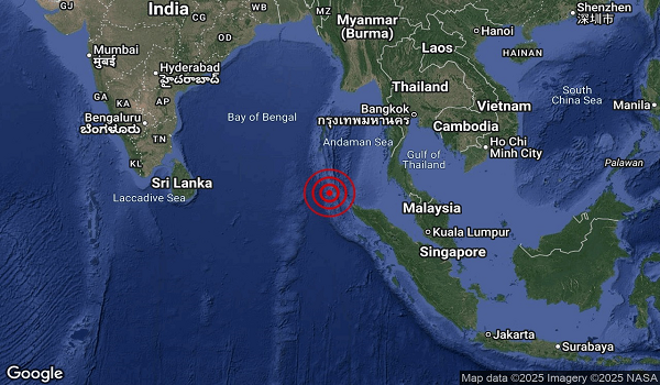 Jabatan Meteorologi Malaysia (MetMalaysia) dalam kenyataan memaklumkan gempa itu berpusat pada koordinat 6.7° Utara dan 93.3° Timur, iaitu kira-kira 58 kilometer barat dari Great Nicobar, India pada kedalaman 26 kilometer.