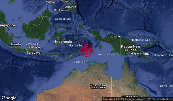 Jabatan Meteorologi Malaysia (MetMalaysia) dalam kenyataan memaklumkan gempa itu berlaku pada jarak 454 kilometer (km) tenggara dari Ambon, Indonesia dengan kedalaman 54km.