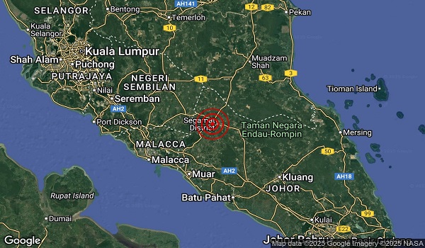 Gegaran turut dirasai di Segamat dan kawasan sekitarnya.