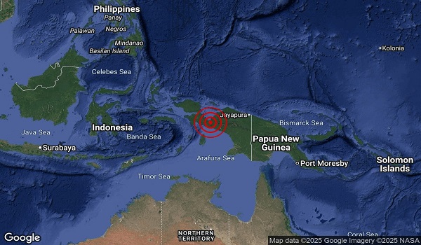 Jabatan Meteorologi Malaysia (MET Malaysia) dalam kenyataan memaklumkan, gempa dengan kedalaman 10 kilometer (km) itu berlaku pada jarak 571 km tenggara dari Sorong, Indonesia.