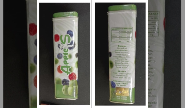 KUALA LUMPUR, 23 Januari- Kementerian Kesihatan (KKM) mengesahkan produk gula-gula berjenama Apple S mengandungi bahan berbahaya iaitu ‘sibutramine’.