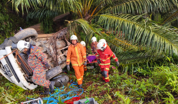 Sejurus tiba di lokasi kejadian, Toyota Hilux dipandu mangsa dipercayai hilang kawalan lalu terbabas ke kiri jalan dan terbalik beberapa kali dan menyebabkan mangsa tercampak keluar.