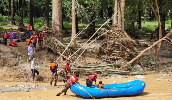 “Operasi menyelamat melibatkan pemasangan tali merintangi sungai dan mangsa dibawa keluar menggunakan bot berikutan jambatan ke lokasi chalet yang telah runtuh,” kata Sayani.