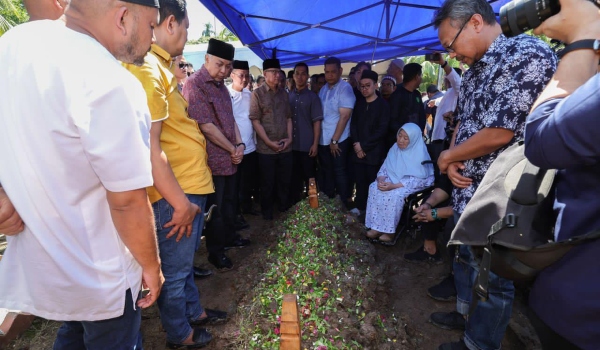 (Datuk Seri Ahmah Zahid Hamidi memberi penghormatan terakhir kepada Allahyarham Salahuddin di Tanah Perkuburan Islam Jalan Sulong, Serkat)
