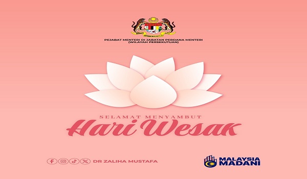 KUALA LUMPUR, 22 Mei– Menteri di Jabatan Perdana Menteri (Wilayah Persekutuan), Dr Zaliha Mustafa, mengucapkan Selamat Hari Wesak kepada semua penganut agama Buddha di negara ini.