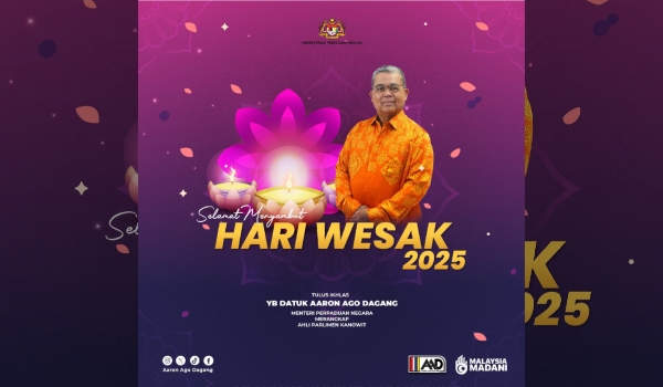 Menteri Perpaduan Negara Datuk Aaron Ago Dagang meluahkan ucapan itu menerusi hantaran Facebook sempena sambutan Hari Wesak yang akan disambut semua penganut agama Buddha di Malaysia.