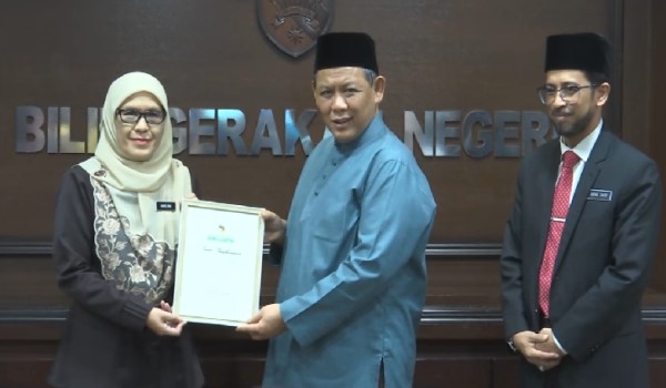 Pengesahan Halal Malaysia dan Surat Penghargaan kepada JKNS dan Hospital Rembau di Wisma Negeri, di sini)