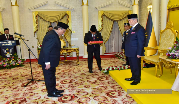 KUCHING, 23 April- Ahli Dewan Undangan Negeri (ADUN) Muara Tuang, Datuk Idris Buang, hari ini mengangkat sumpah pelantikan semula sebagai Timbalan Speaker Dewan Undangan Negeri Sarawak di Astana Negeri Petra Jaya, Kuching.