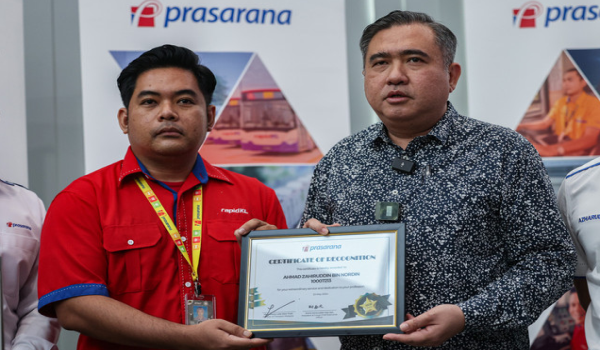 KUALA LUMPUR, 24 Mei – Pemandu Monorel, Kapten Ahmad Zaharuddin Nordin menerima sijil penghargaan daripada Kementerian Pengangkutan selepas beliau berjaya mengelak kemalangan Monorel akibat pokok tumbang baru-baru ini.