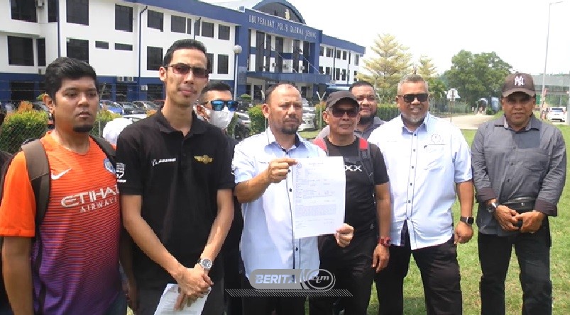 Setiausaha Agung MTUC, Kamarul Baharin bersama sekumpulan pekerja MYAirline membuat laporan itu di Ibu Pejabat Polis Daerah (IPD) Sepang hari ini.
